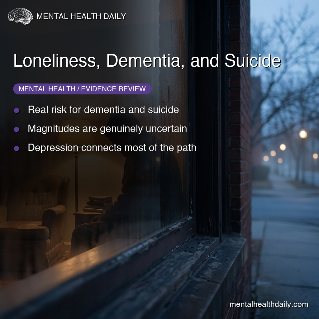 The associations between loneliness and bad outcomes are well-documented, but the popular framing flattens substantial uncertainty — about magnitude, about causal direction, and about which mental and cognitive outcomes loneliness most reliably predicts. The 2026 Rodrigues meta-analysis is the largest available synthesis at the loneliness/Alzheimer’s/suicide intersection, and reading its numbers carefully separates what the data show from what the headlines say.